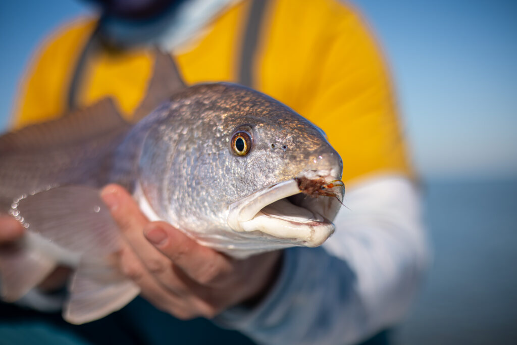 The speckled trout seemed to struggle with the cold more so this year than others. We did well with them early in the winter. But the fishing seemed to trail off as the fronts got more extreme. We witnessed large schools of fish up shallow swimming. But getting them to bite or feed in those situations was very rare. As it’s been warming, they have gotten back to feeding. But fishing fish on the edges of the large schools has been where we’ve seen success. Once the fish are on to you, we’ve observed a noticeable change in behavior throughout the school and it’s best to leave them alone and move on after a couple fish.